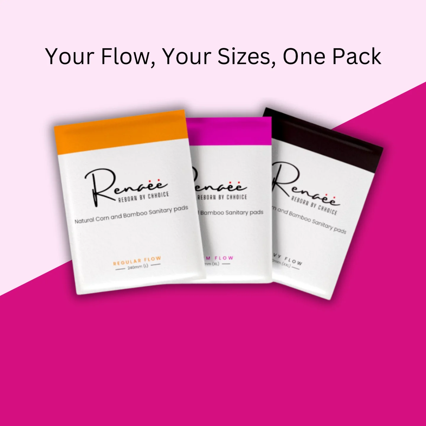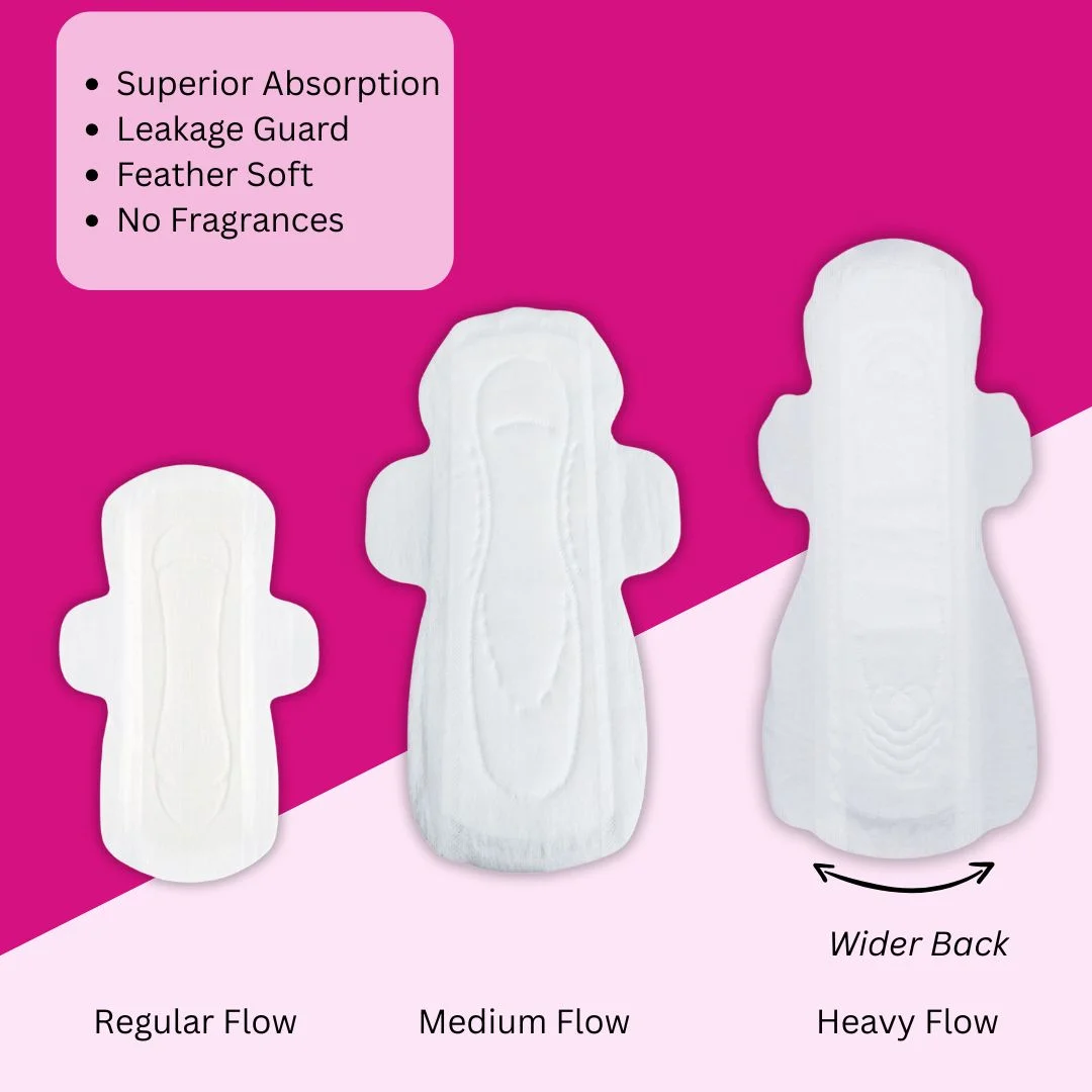 We've bundled everything you need into one convenient pack, so you're perfectly prepared for your entire cycle. Whether it's the lighter days or your heaviest flow, you'll find your perfect match with our L, XL, and XXL sizes, all in one go.