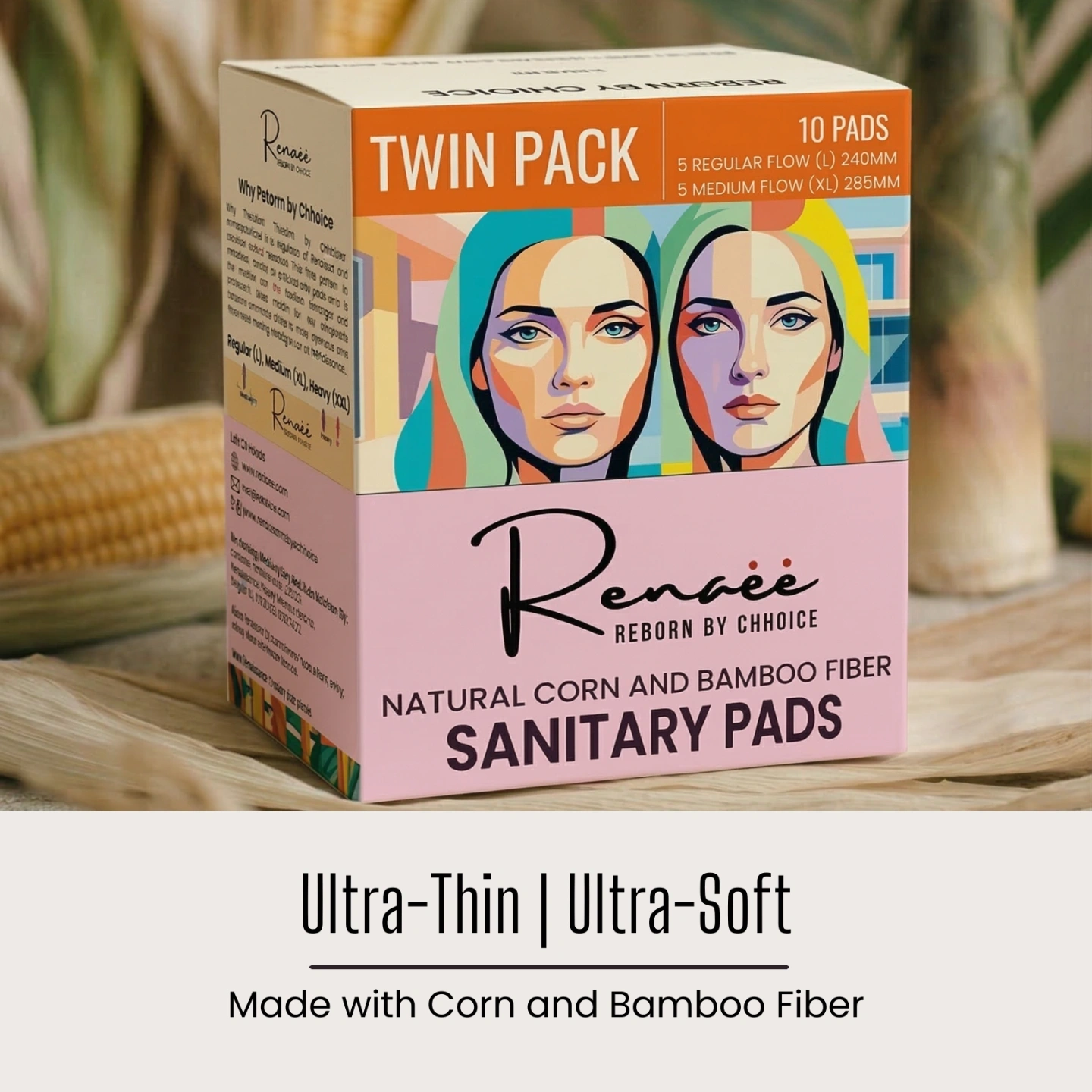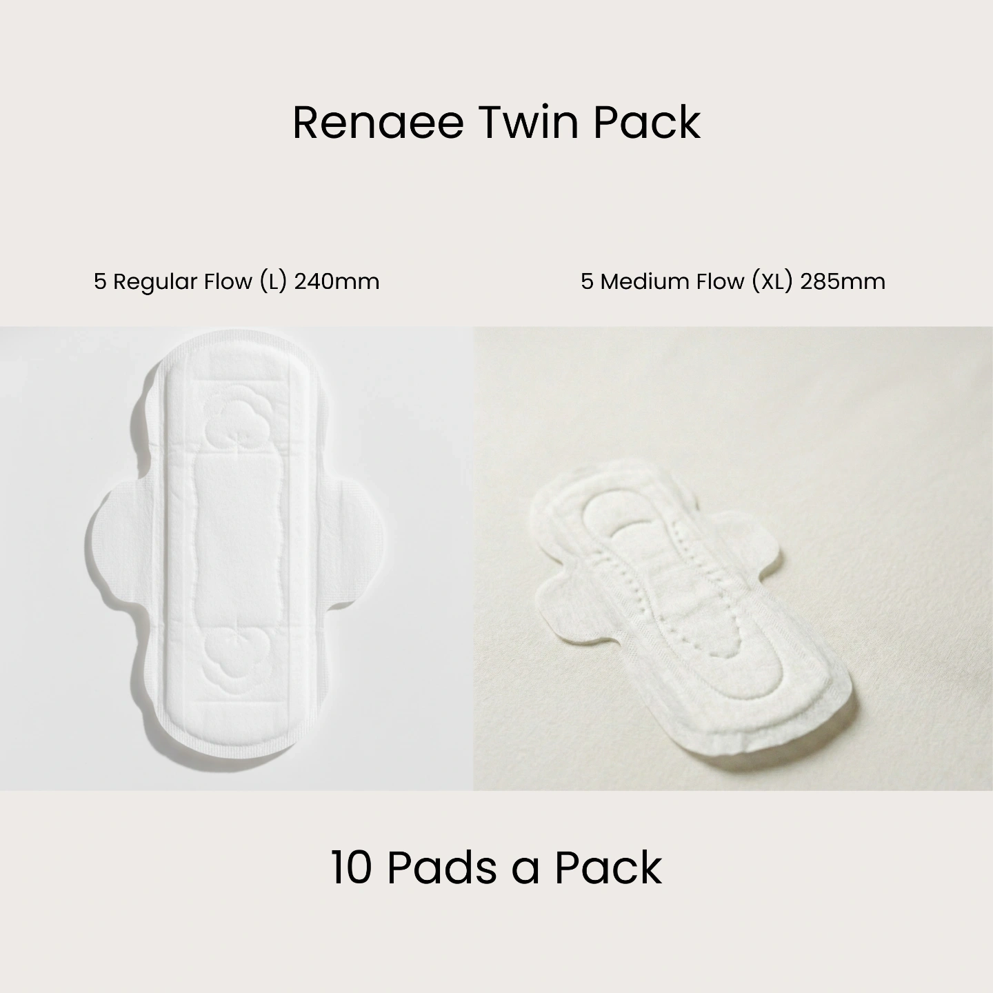 The Renaee Twin Flow Pack is designed to match your changing needs, combining two absorbency levels in one box. From lighter days to heavier flow, you’re always covered.