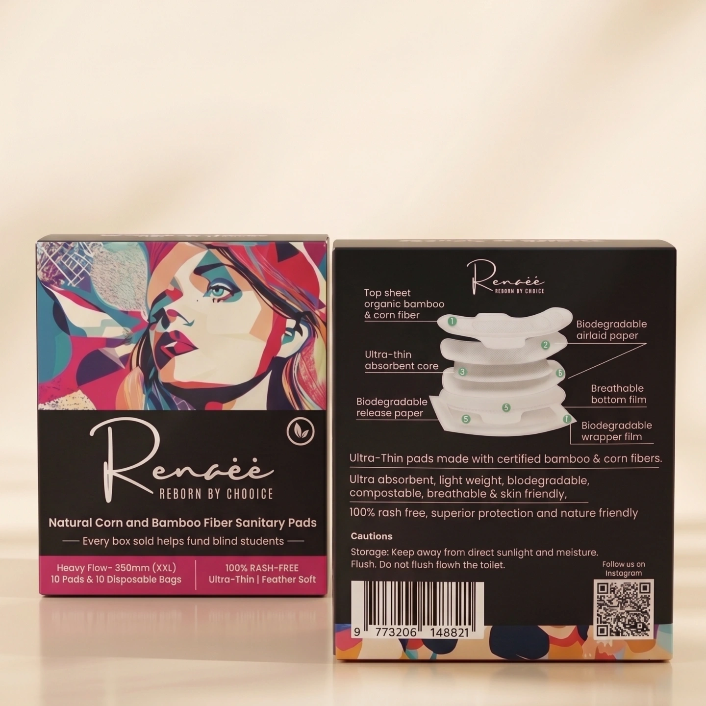Stay protected on heavy flow days with Renaee Premium Heavy Flow Sanitary Pads (350mm). Ultra thin yet highly absorbent, with bamboo and corn fiber for rash-free comfort. Biodegradable and eco-friendly.