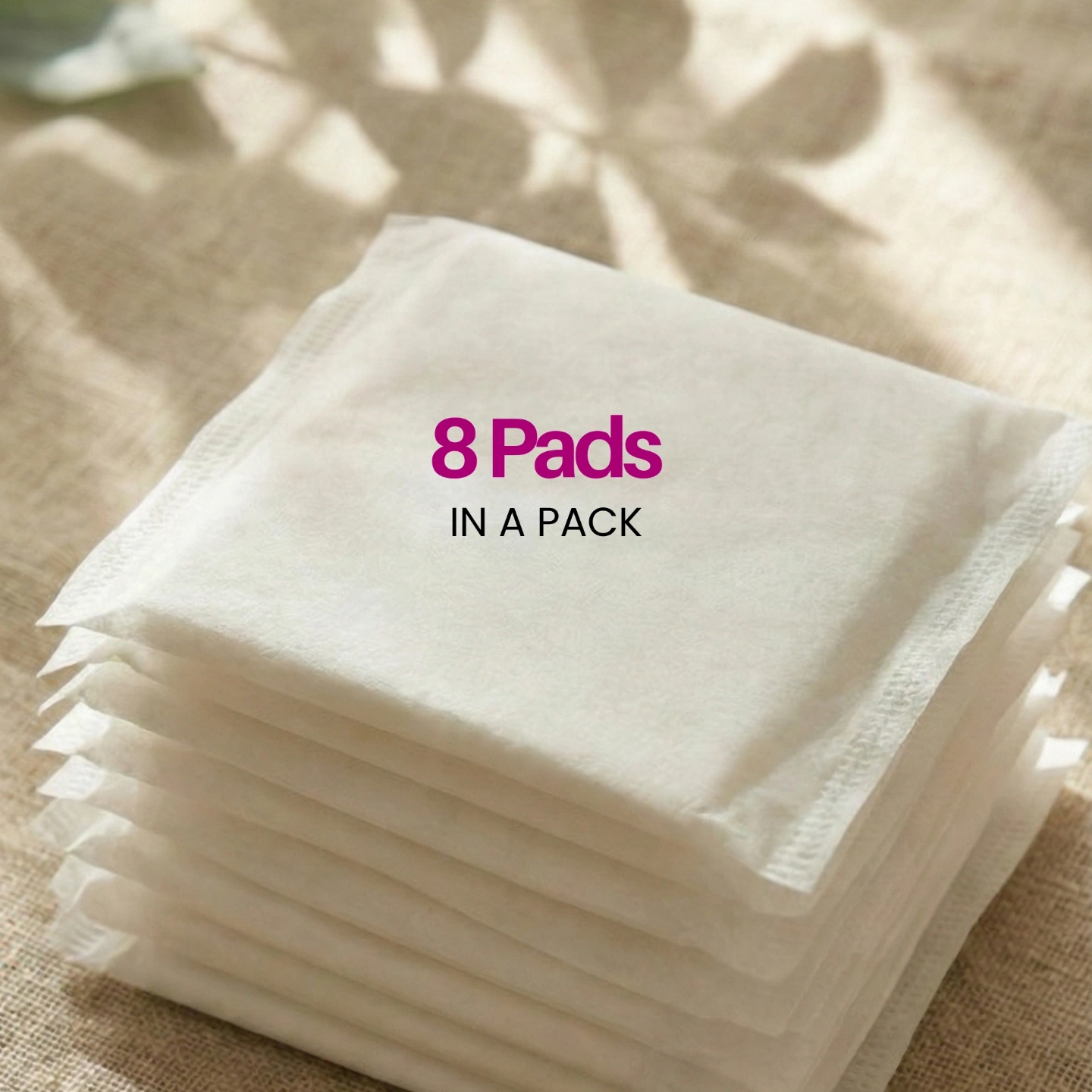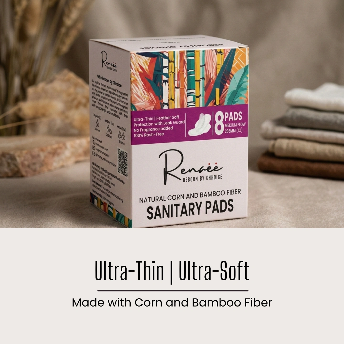 Renaee Value Pack Medium Flow Pads (285mm, 8 pcs) deliver discreet, ultra thin comfort with high absorption for moderate flow. Bamboo and corn fiber keep skin rash-free, while biodegradable design makes eco-conscious period care simple and effective.