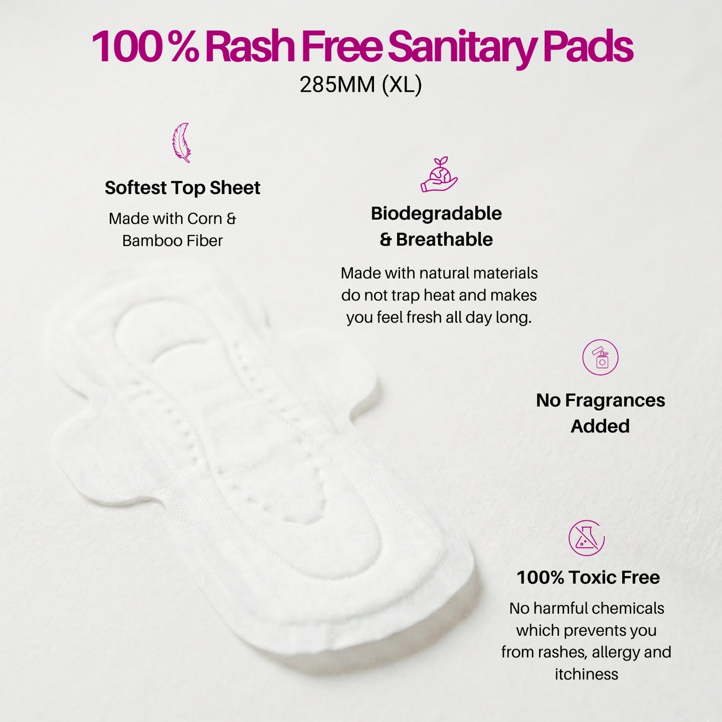 Eco-Conscious Pads: Biodegradable bamboo & corn fiber.